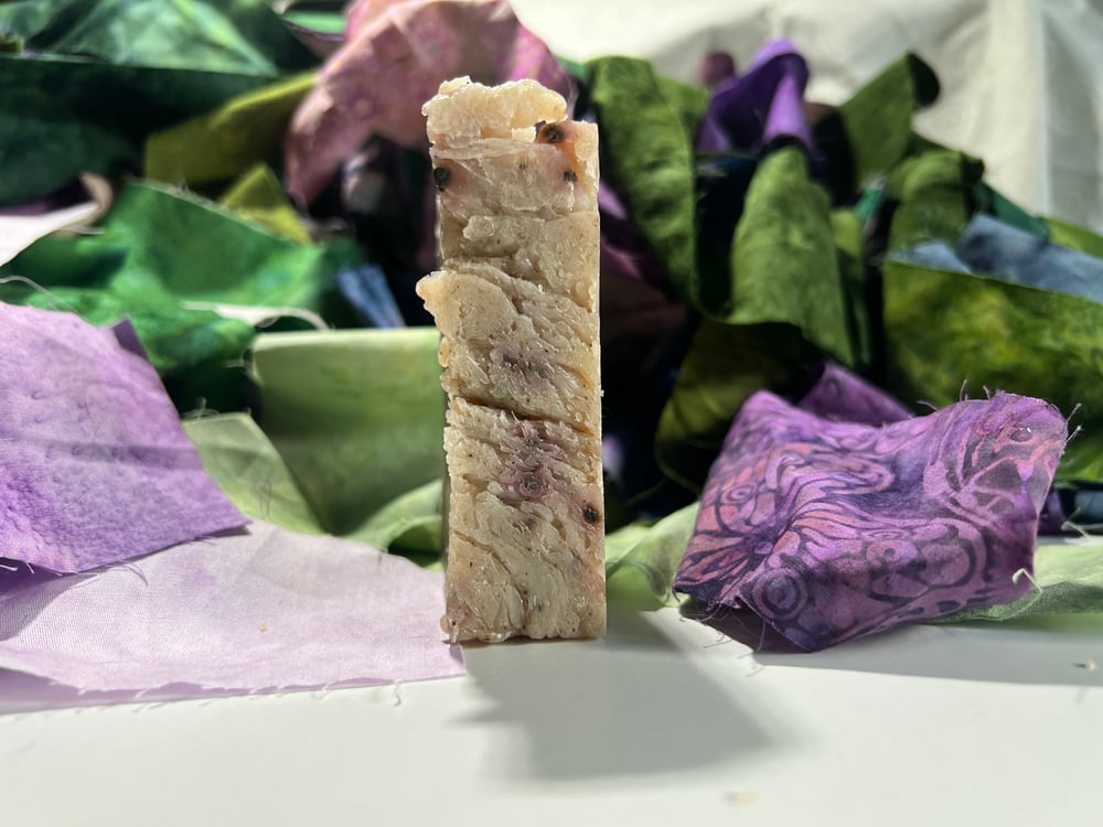 Made with Rosemary water, beetroot powder, Matcha powder, cocoa butter, olive oil, coconut oil, olive oil. Bergamot and lime essential oil.